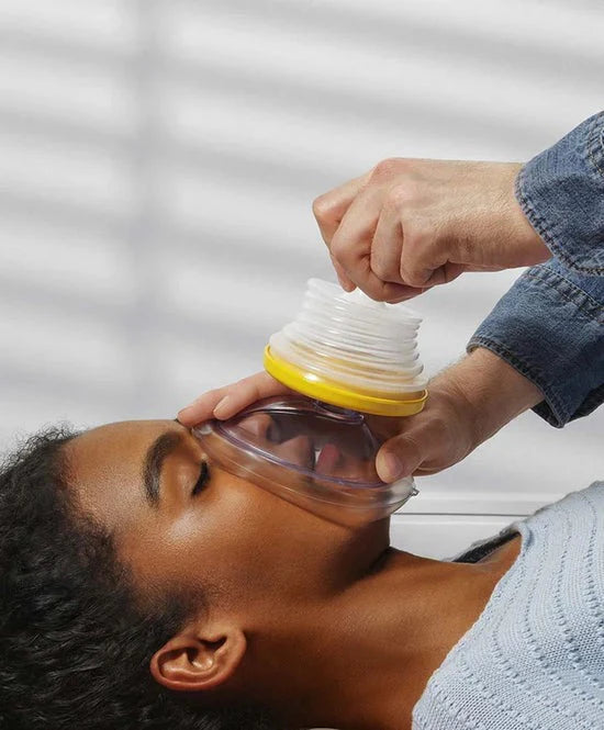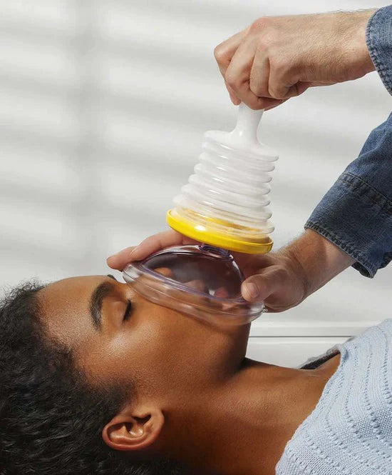 Rescue Breath™uses a patentedone-way suctionsystem to safely and effectively remove airway obstructions in seconds. Justplacethe mask,pushdown, andpullup, no force or invasive methods required.